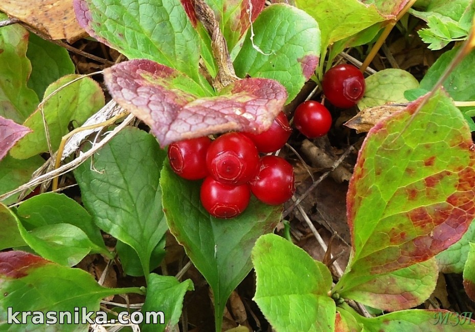 Исследуемые органы красники характеризуются низкой зольностью, причем заметных отличий по географическим районам не отмечено. В листьях содержится золы в два раза выше, чем в плодах. Количество протеина, клетчатки, общего азота также выше в листьях. Существенные различия наблюдаются в содержании клетчатки: ее количество в плодах в три раза меньше, чем в листьях. В фазу зрелости плодов, когда отбирали в данном опыте ягоды для анализов, листья имели заметную осеннюю антоциановую окраску. На смену активной деятельности хлоропластов в клетке пришли хромопласты, поэтому листья в этой фазе развития характеризуются высоким содержанием каротина. В отдельных пробах его количество достигало до 220 мг/кг сухой массы вещества.