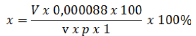 V – объем раствора 2,6-дихлорфенолиндофенолят натрия (0,001М), пошедшего на титрование, в миллилитрах; 0,000088 – количество аскорбиновой кислоты, соответствующее 1 мл раствора 2,6- дихлорфенолиндофенолят натрия (0,001М), в граммах; v-объем сиропа в миллилитрах; p – плотность сиропа в г/см³.