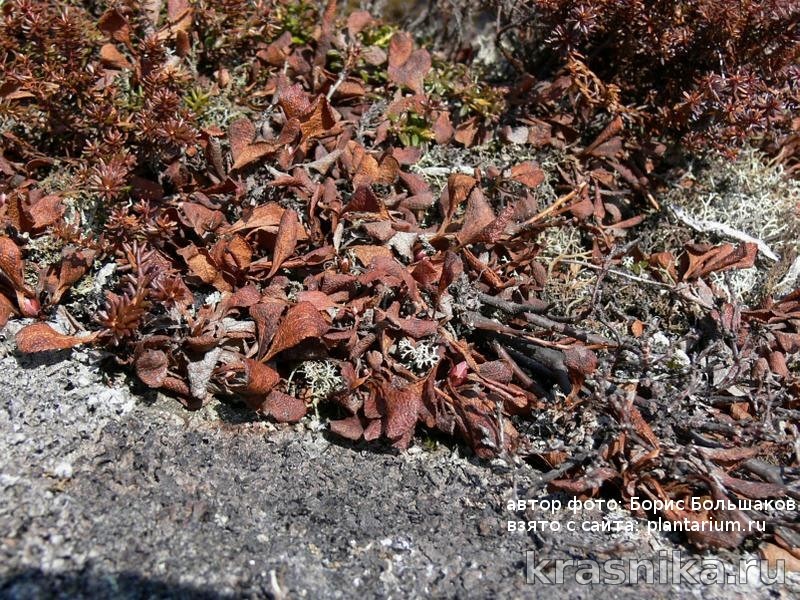 На фото ниже показано как выглядят перезимовавшие растения в начале вегетации. Фото сделано Борисом Большаковым. Камчатский край, Елизовский р-н, склон мокрой тундры на границе с каменноберезняком. 24.05.2008.